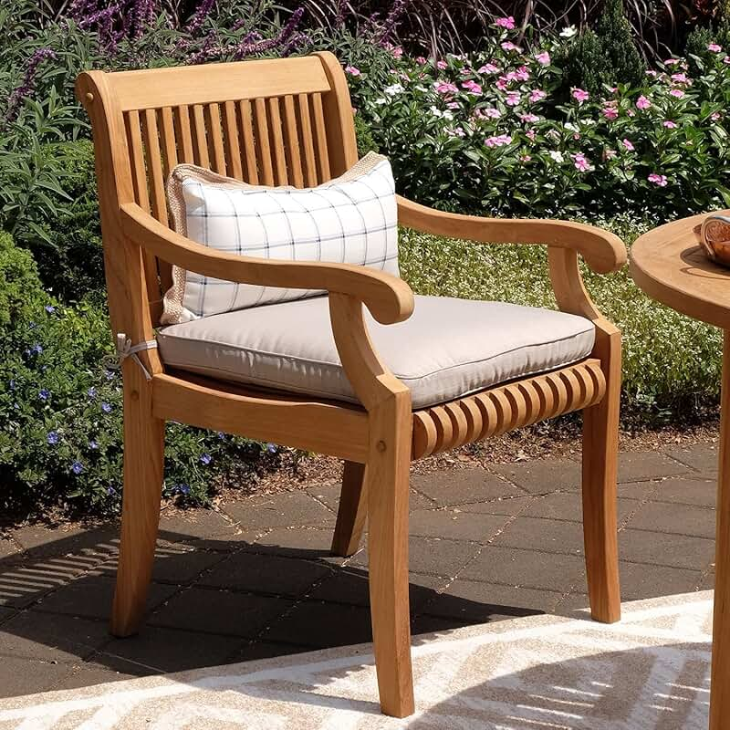 For added comfort, many teak dining chairs are designed with contoured seats or padded cushions. Cushions can be customised with various fabrics to match the decor, adding colour and texture to your dining space. Teak chairs with armrests provide extra support and can make extended seating more enjoyable, while armless designs offer a compact look, perfect for maximising space around a table.